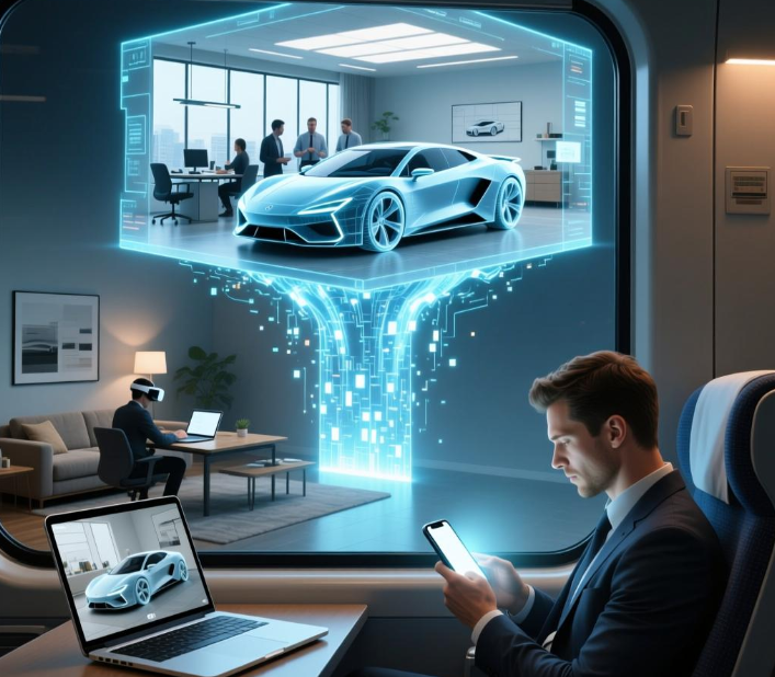 公司内是最常用的场景,仿真设计师在设计软件上建立好模型后,可以将模型实时动态传输到云端会议,并迅速开启会议